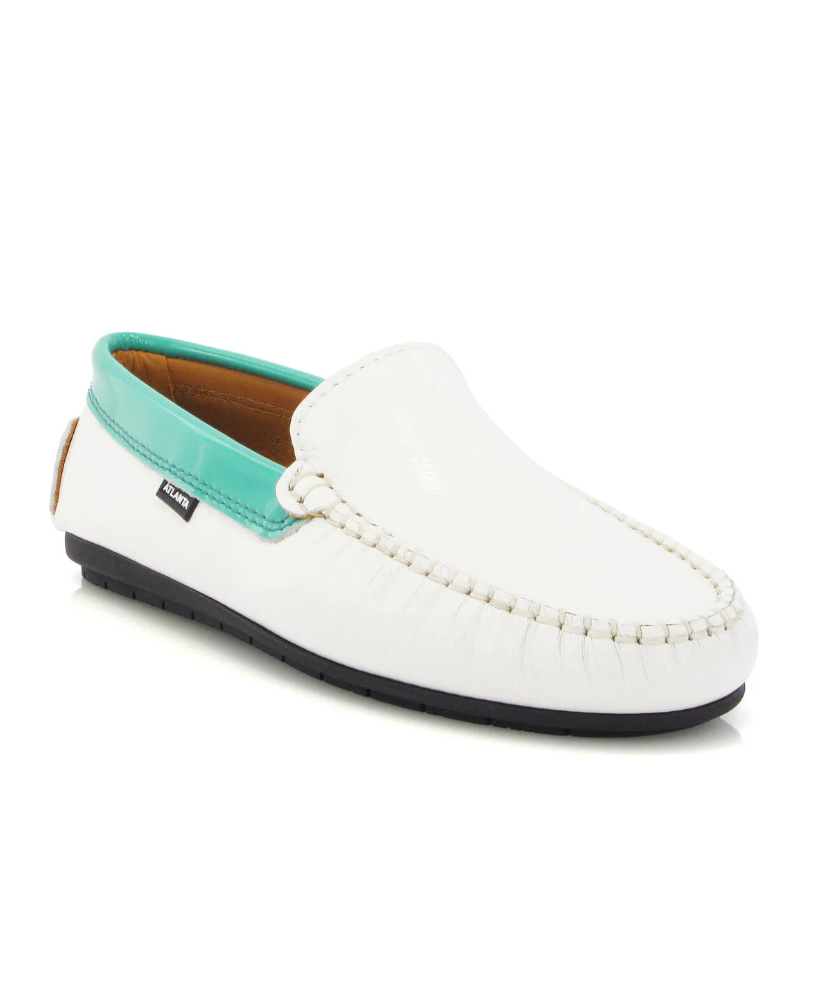- Mocassins Originals com pala lisa em pele nappalack branca e gola azul turquesa
