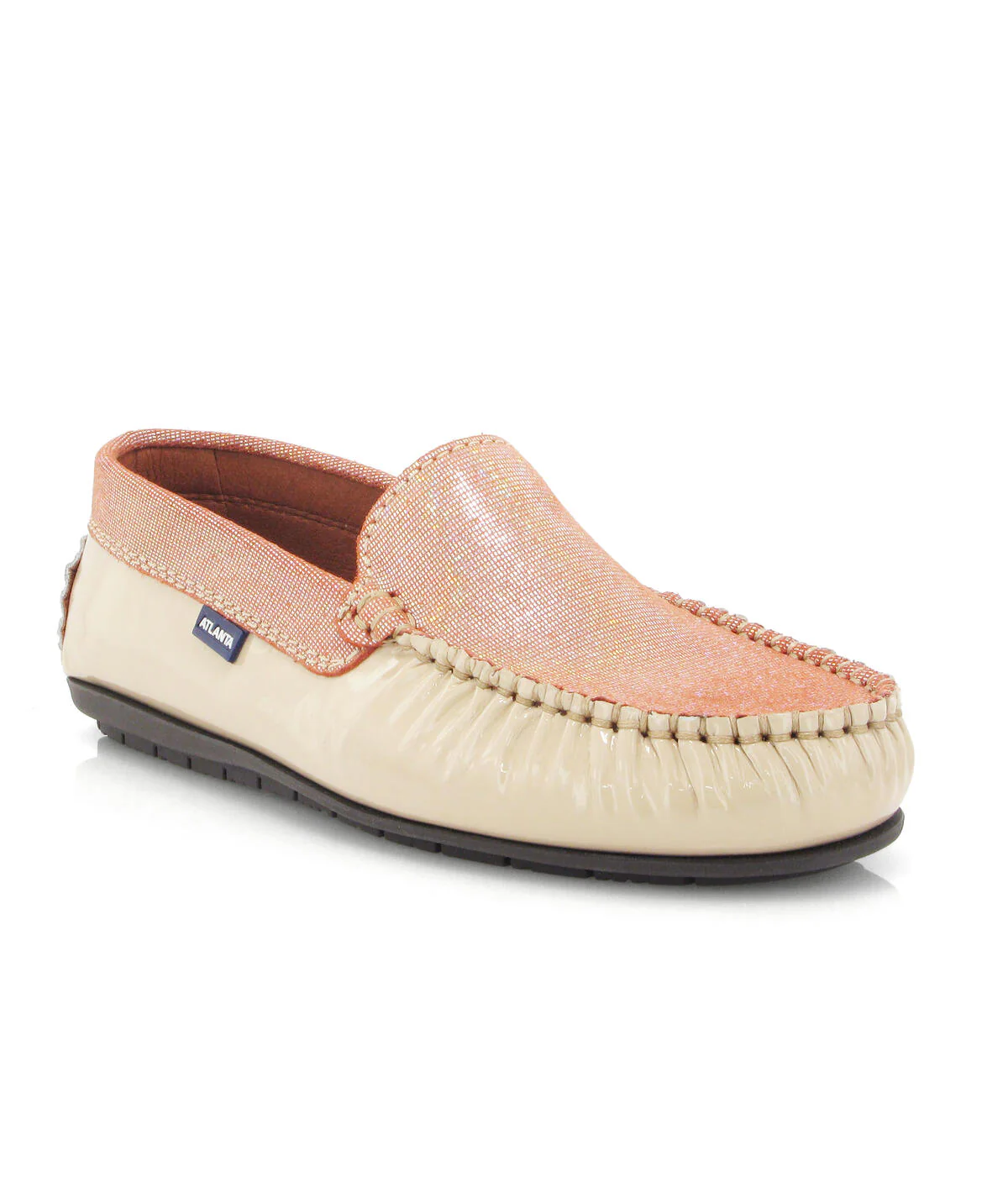 - Mocassins Originals com pala lisa em verniz bege e pele polida laranja
