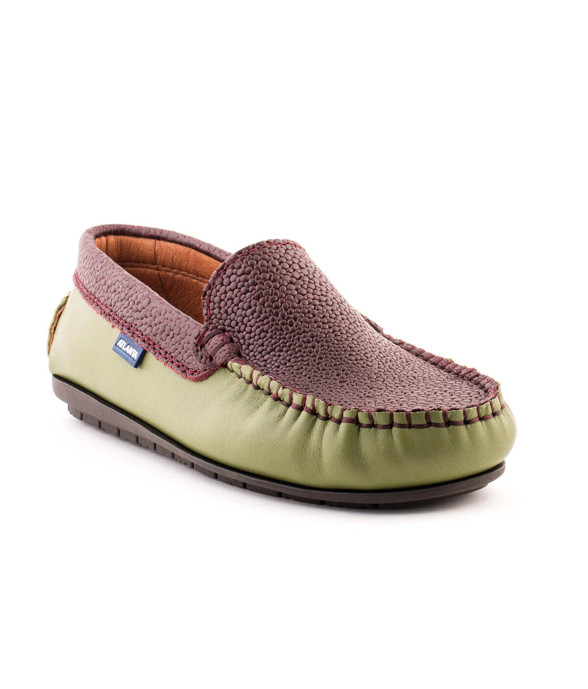 - Mocassins Originals com pala lisa em pele verde oliva e pele gravada bordeaux